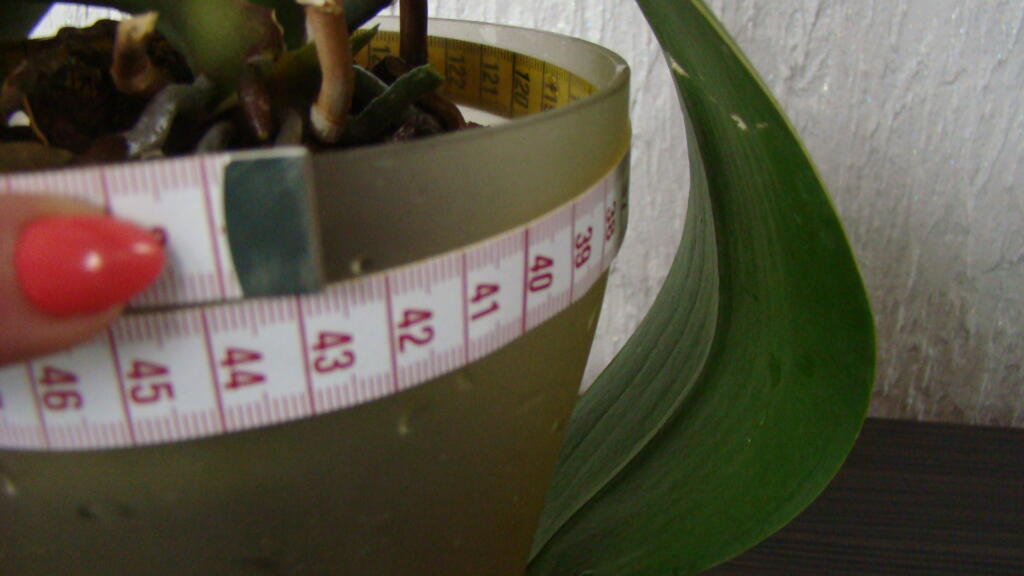 Mierzymy obwód doniczki w najszerszym miejscu oraz jej wysokość. Moja doniczka ma obwód 42,70 cm oraz wysokość 16 cm.