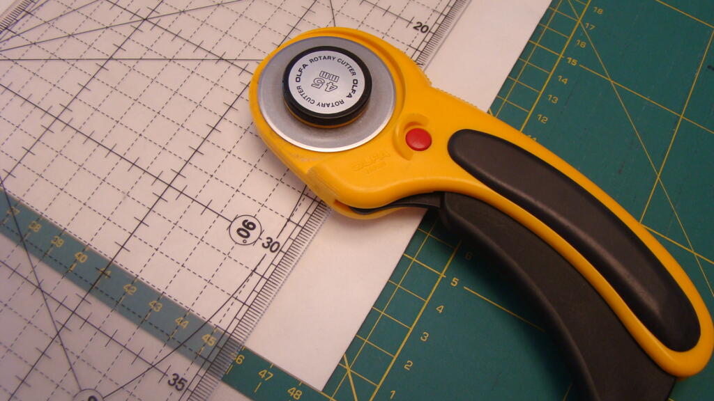 - Przeźroczysta linijka z podziałką centymetrową do cięcia tkanin