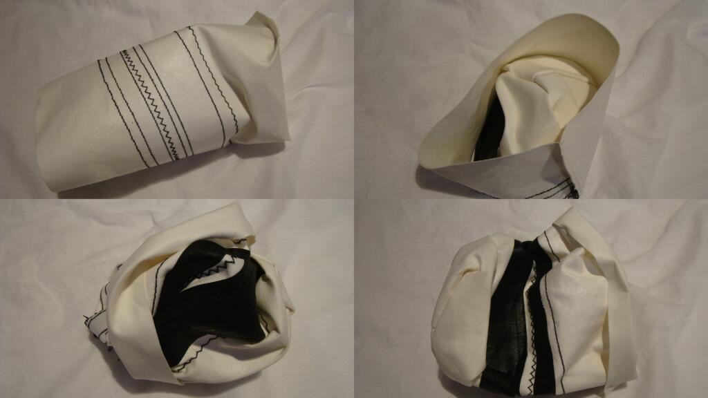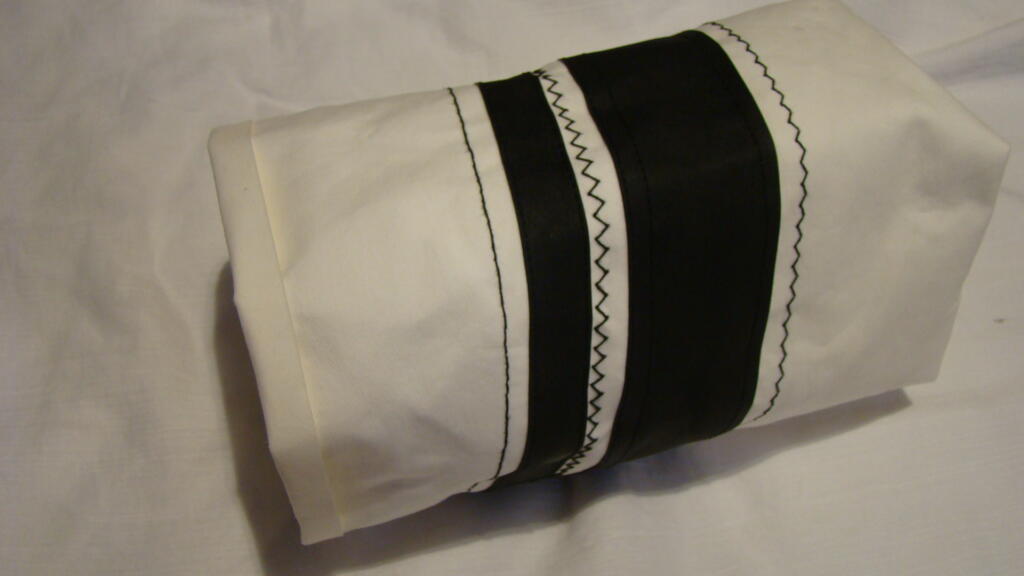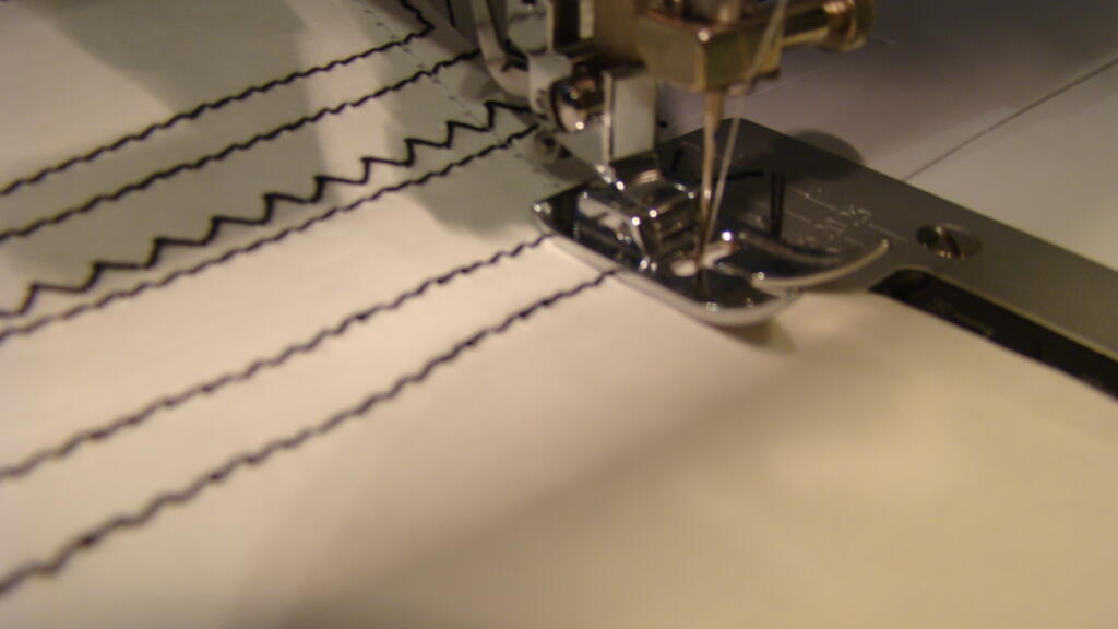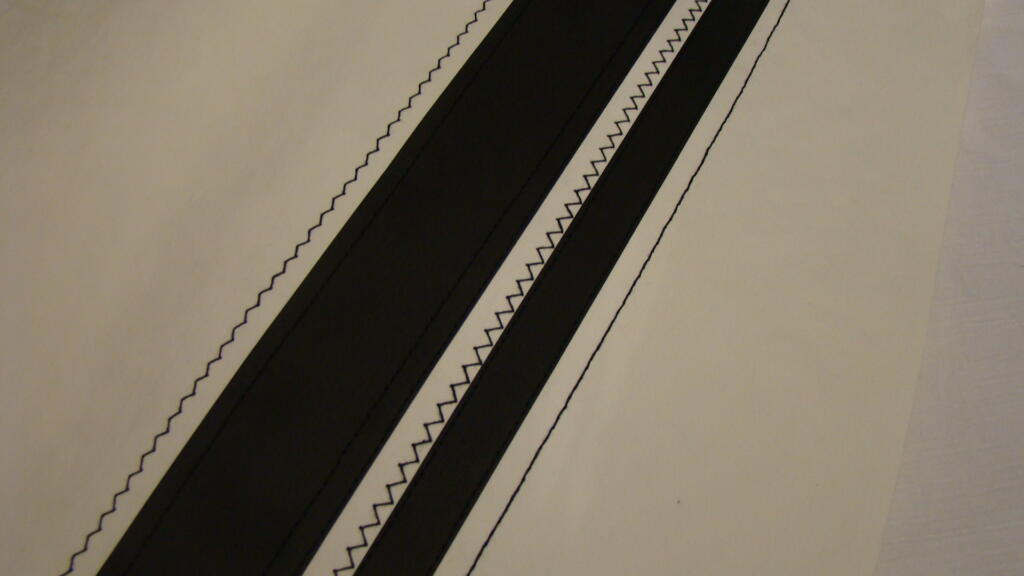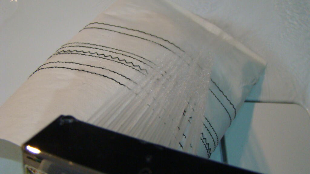 Do białej washpapy przyszyłam czarne prostokąty oraz przeszyłam ściegiem zygzakowym. Aby ozdobić osłonkę, możecie tutaj wykorzystać ściegi ozdobne Waszej maszyny.