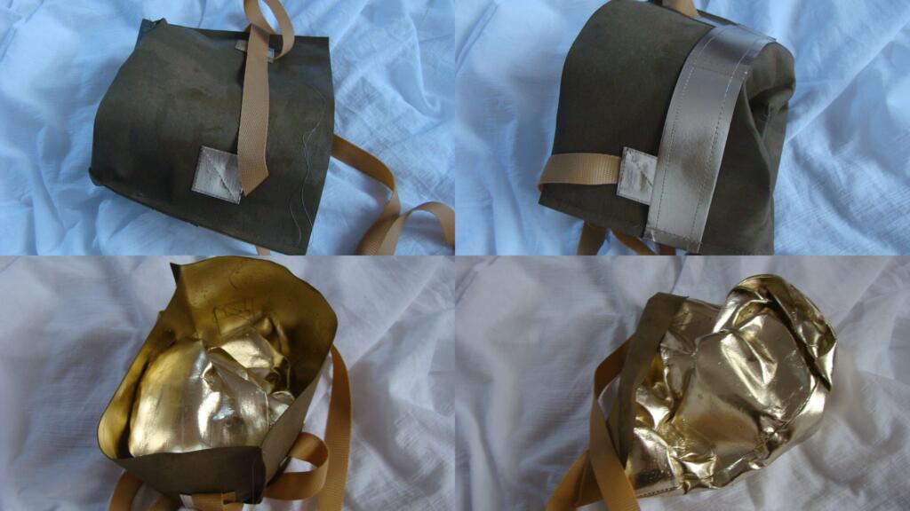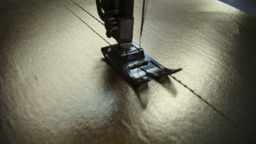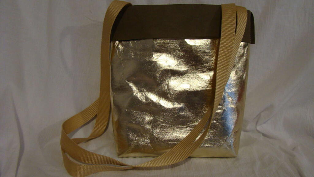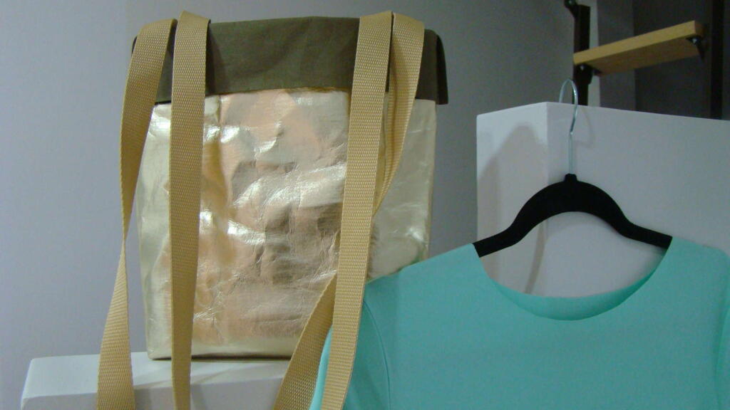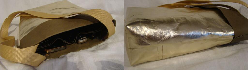 Fotorelacja z szycia torebki z WASHPAPY LAMINA + w kolorze platynowym. Platyna jest kolorem pasującym do letnich stylizacji.