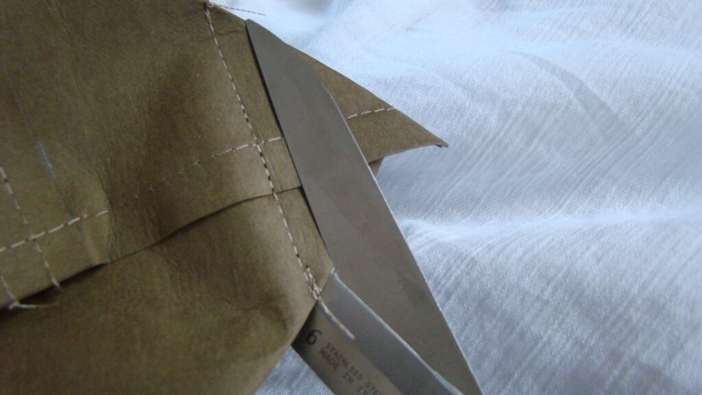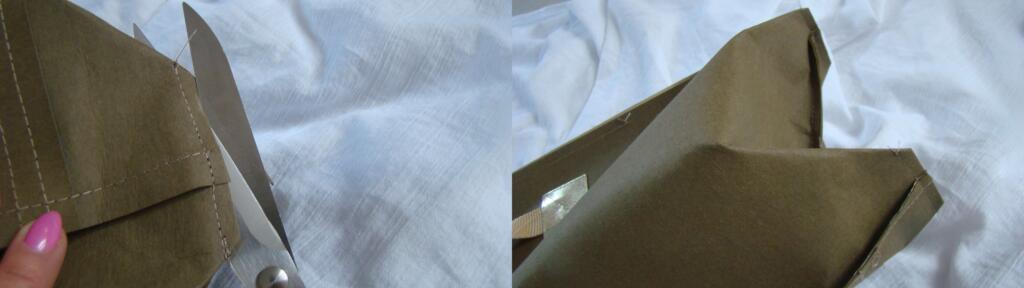 Obcinanie trójkątów, które nam powstały po zszyciu