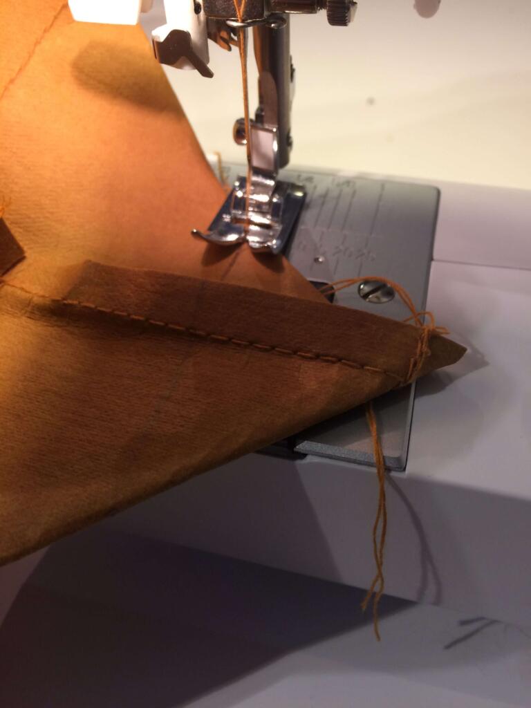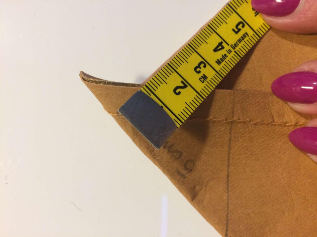 Jeśli chcecie aby dno torebki było szersze, musicie uformować trójkąt o dłuższej podstawie. W zależności od tego jakie chcemy denko, takiej szerokości musi być szew.