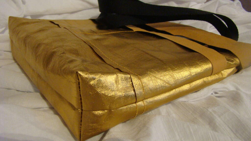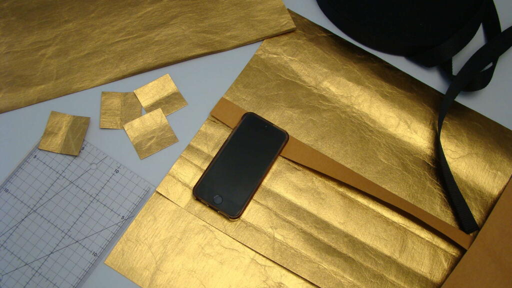 - WASHPAPA/ washable kraft paper STANDARD BRĄZ. Wybór koloru papieru nie jest przypadkowy. Bazą do produkcji WASHPAPA SHINE GOLD jest WASHPAPA STANDARD w kolorze brązu . Aby obniżyć koszty torebki arkusz wykorzystamy na kieszeń wewnętrzną oraz na szycie próbne, regulację : długości ściegu, naprężenia nici oraz docisku stopki.