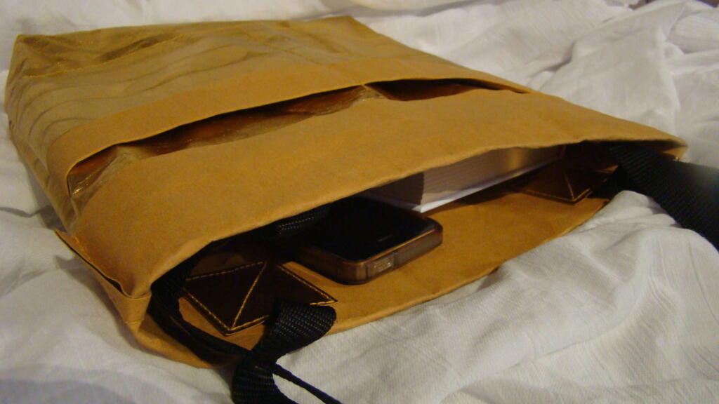 - Maszyna do szycia stebnówka. WASHPAPĘ można szyć na domowej maszynie. Jest dużo twardsza niż skóra, dlatego należy używać ostrych igieł. Ścieg nie może być zbyt gęsty. Długość ściegu ustawiamy na dłuższą niż przy szyciu tkanin standardowym. Gęste dziurki mogą rozerwać papier na szwach. Szyłam torebkę prostym ściegiem – stebnówką.